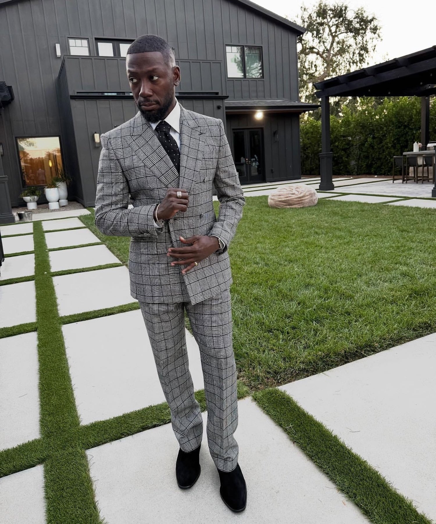 Emmy Award-winning actor Lamorne Morris pictured in suede Alatus boots, decked out for the Emmys.