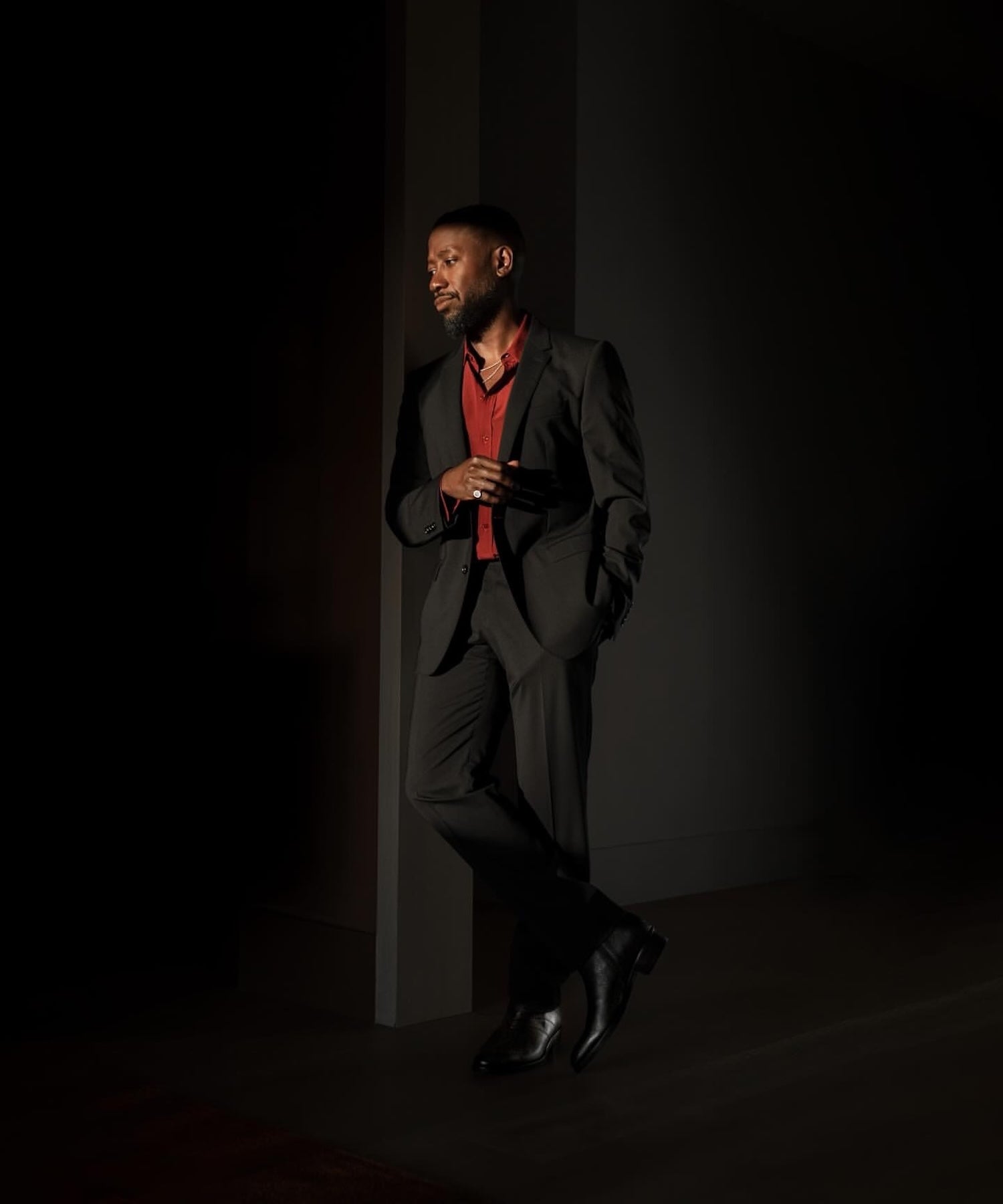 Emmy Award-winning actor Lamorne Morris pictured in calfskin Alatus boots, decked out for the Emmys.