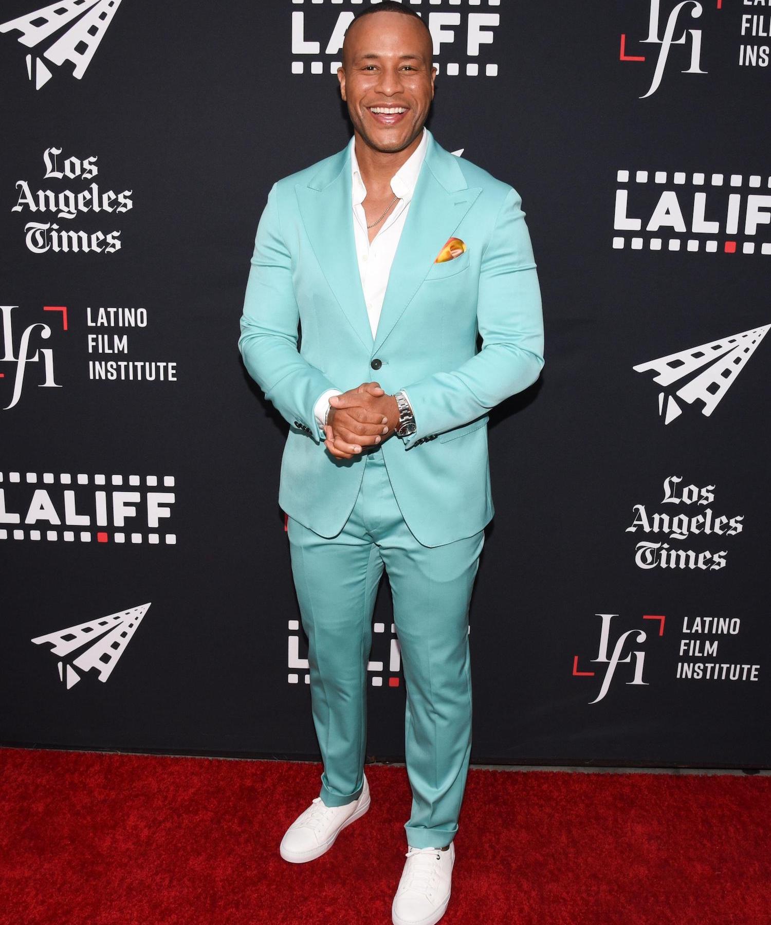 Producer DeVon Franklin wearing the Ray sneaker for the opening night of Flamin Hot movie at the Los Angeles Latino International Film Festival.