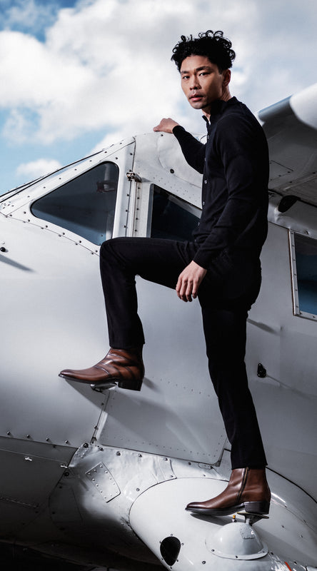 Actor Noah LaLonde stepping out in Los Angeles wearing the Alatus boot in Obsidian Fade.